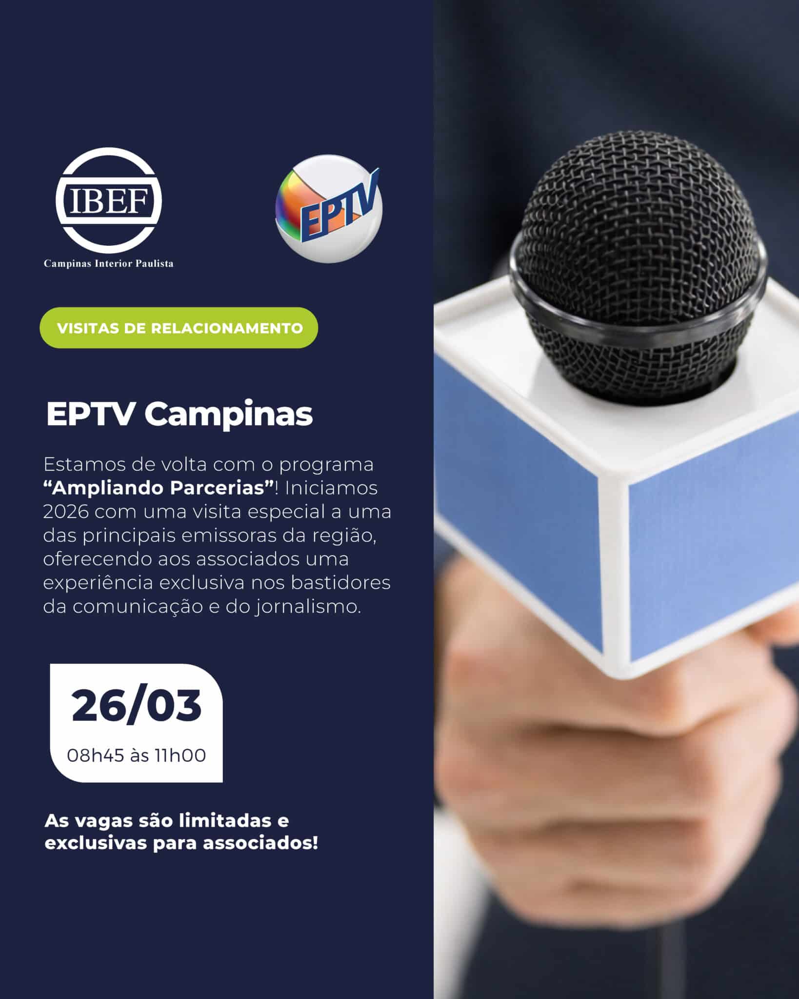 Por isso, convidamos você a se inscrever para nossa 1ª visita do ano, que acontecerá no dia 26 de março, a partir das 08h45, na EPTV Campinas, afiliada ao Grupo EP, que também engloba a rádio CBN e outros veículos de comunicação.